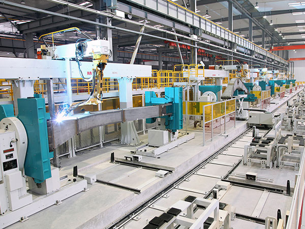 中厚板智能化柔性焊接生產(chǎn)線(FMS)由機(jī)器人智能焊接系統(tǒng)、物料自動搬運(yùn)系統(tǒng)、焊接制造管理信息系統(tǒng)、生產(chǎn)線智能控制系統(tǒng)集成,實現(xiàn)機(jī)器人均衡化自動混流生產(chǎn)。